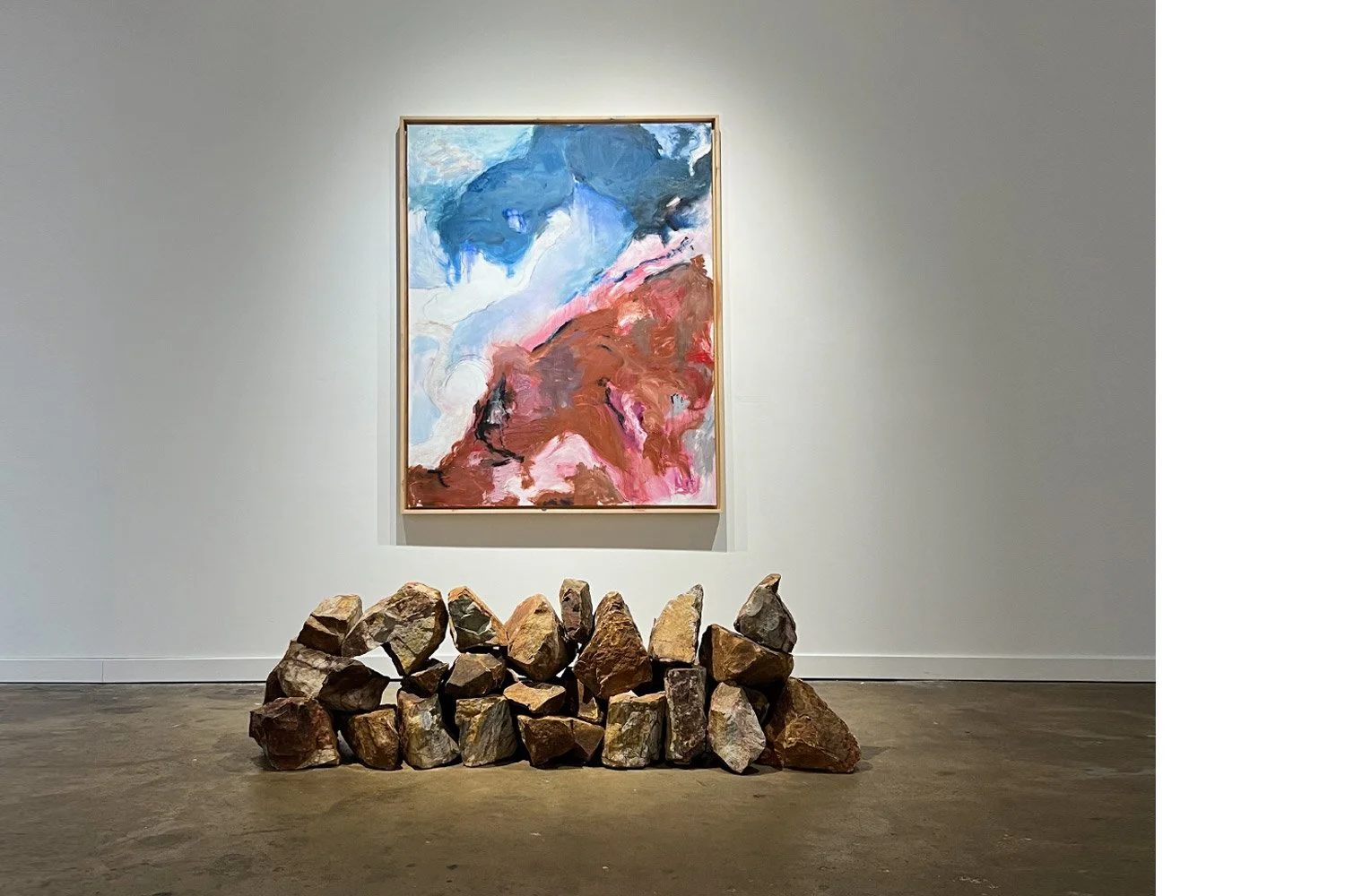 Reality Is Only Your Perception featuring Chris Stewart, Marla Ziegler, Kelsey Irvin, Adam Ball, Damián Suárez, and Shawn Smith, explores when familiar images and materials resist easy interpretation and perception shifts from passive recognition to active inquiry. Chris Stewart works in the space between representation and abstraction, using layered gestures and shifting color fields to capture emotional and atmospheric states rather than fixed places. His paintings suggest landscapes that feel familiar yet unresolved, shaped as much by memory and mood as by physical geography. Extending beyond the canvas through all-over compositions and three-dimensional elements placed around the paintings, Stewart complicates how the viewer approaches the work, turning perception into an active experience that unfolds across space.