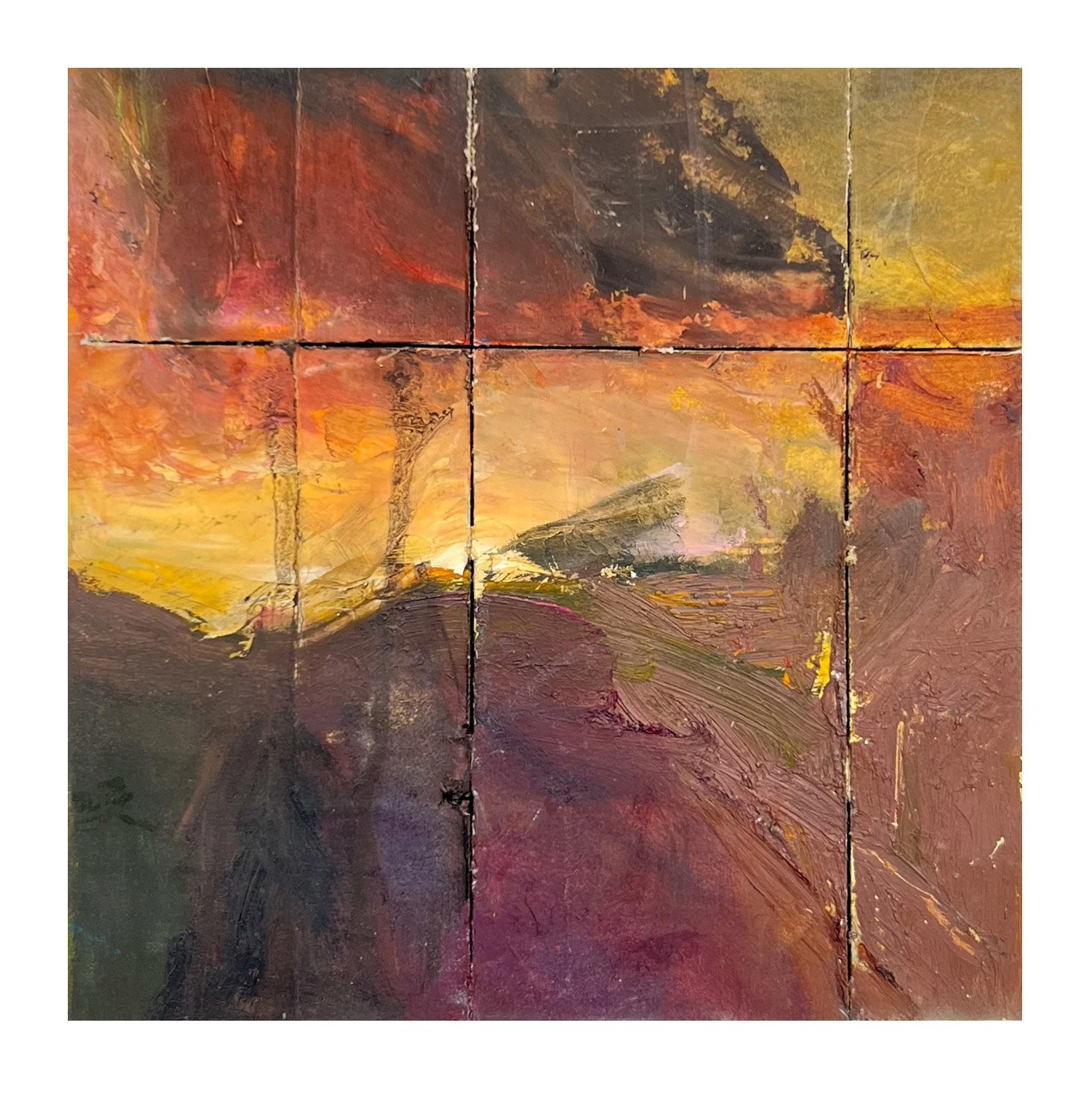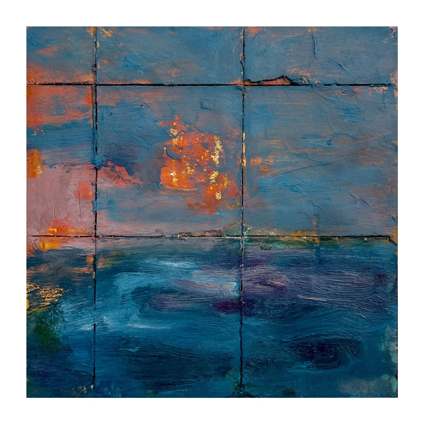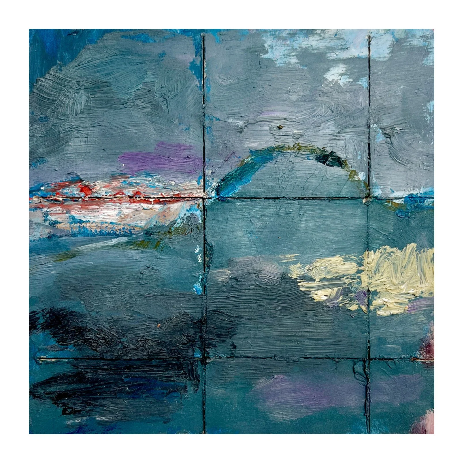 Interval 18, 2026 Oil on paper and cut wood panel 7” x 7”