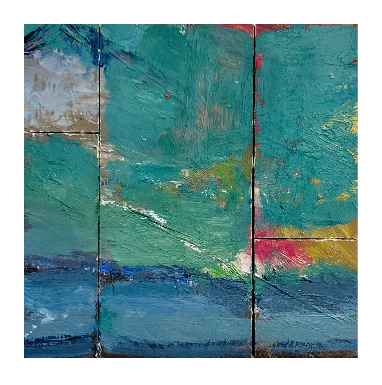 Interval 11, 2026 Oil on paper and cut wood panel 7” x 7”